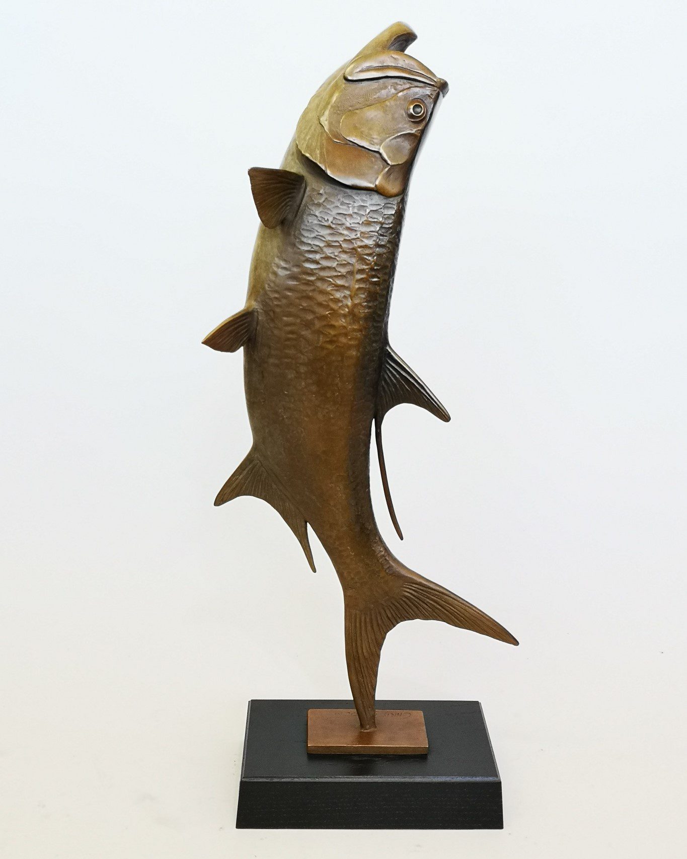 Stealthy and wary, tarpon offer anglers an irresistible challenge. They’re selective eaters and easily spooked, once hooked you have a wily adversary that doesn’t give up easily and will catch you off-guard with aerial jumps and bursts of powerful runs. The bronze study was created as a trophy for the annual Golden Fly Tarpon Tournament held in Islamorada, Florida.